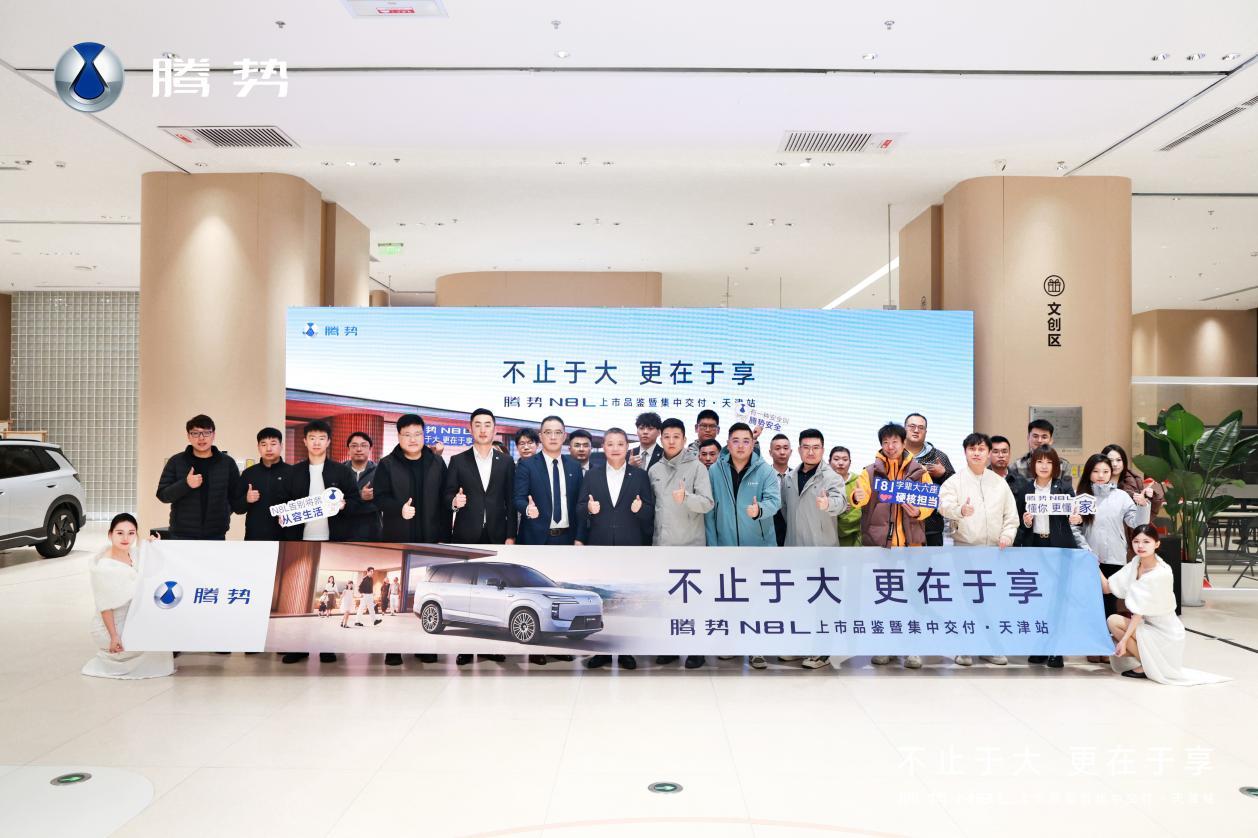 直播结束后,天津迪空间的展厅内气氛热烈。车主、媒体与腾势区域负责人一同在N8L前合影留念。这一刻,不仅记录了一款新车的上市,更见证了一个家庭出行新标准的启程。