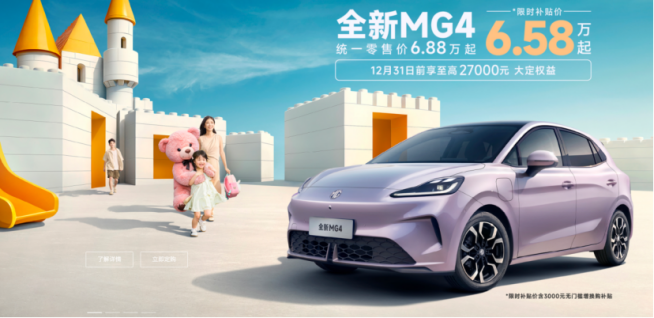 名爵 MG4 也推出了颇具吸引力的购车政策,综合优惠高达 2.7 万元(详询当地经销商),力度可观;金融方面提供贷款总额 5 万、24 期 0 利息方案,短期还款压力小;充电桩权益上,免费赠送价值 3000 元的 7kW 充电桩及安装服务,满足日常居家充电需求,对预算敏感且追求短期优惠的用户有一定的吸引力。