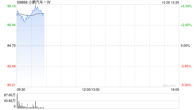 小鹏汽车-W(09868)早盘股价上涨4.43%,现报88.45港元,成交额7.14亿港元。